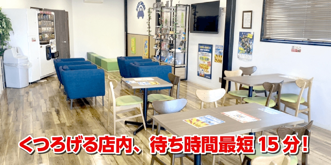 ご予約いただければあまりお待たせせずに作業にとりかかりますので、およそ15分程の待ち時間となります。お客様の混雑状況によっては多少前後することがございます。